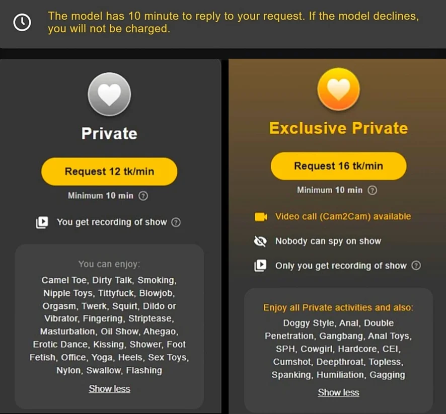 One of the highest-rated models for Private shows